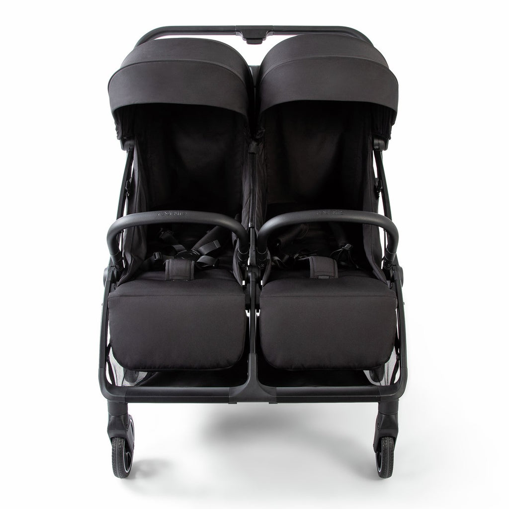 Featuring a compact fold, easy-grip handles, and a 5-point safety harness for each seat, the Duet ensures safety and convenience. The individual canopies provide sun protection, and the roomy storage basket underneath is perfect for all your essentials. Ideal for school runs, shopping trips, or family outings, this stroller makes managing two children simpler and more stylish.